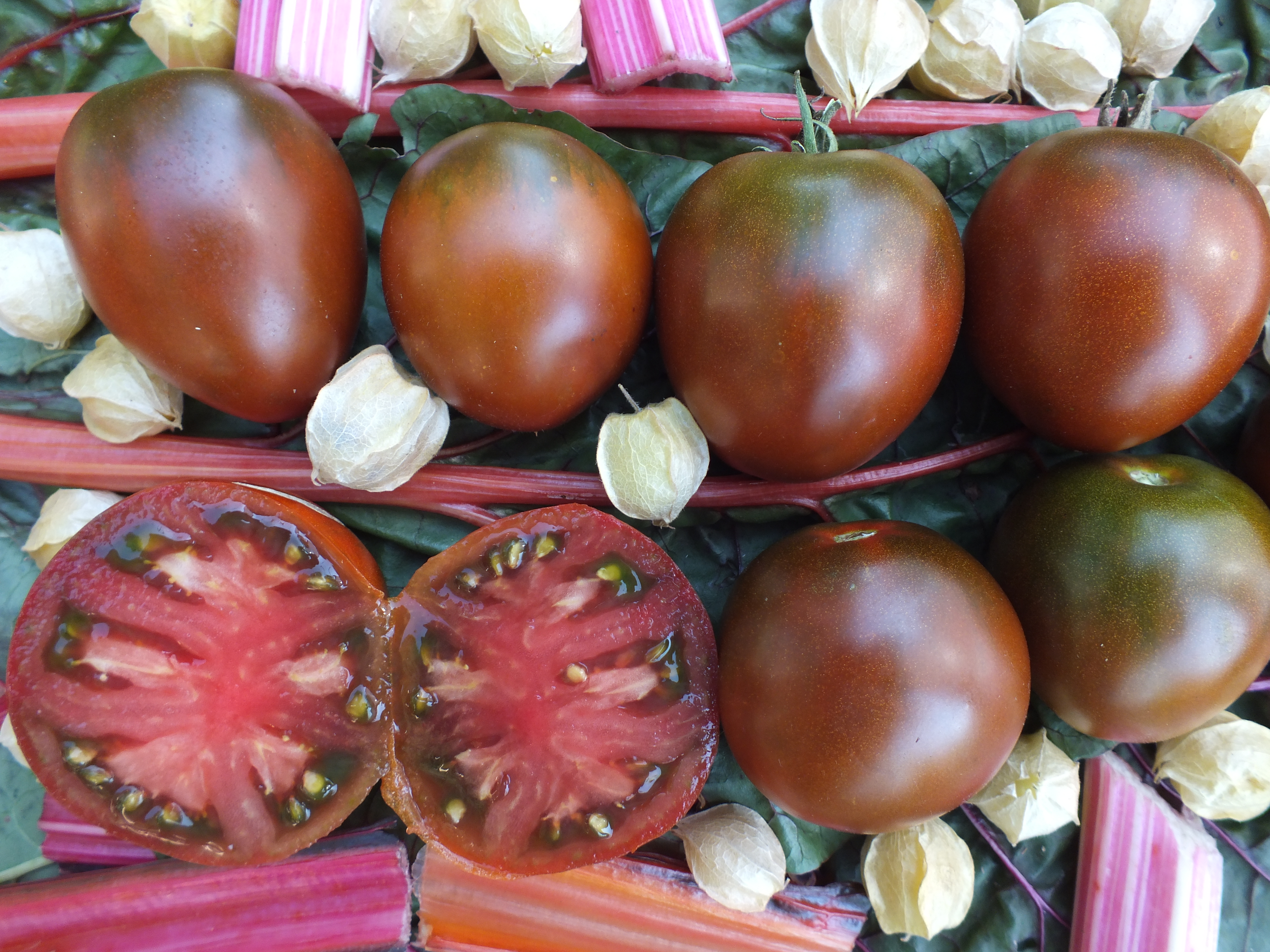 - Black Russian ( braune, süß-saftige Sorte, milde Säure, mittelhoch)