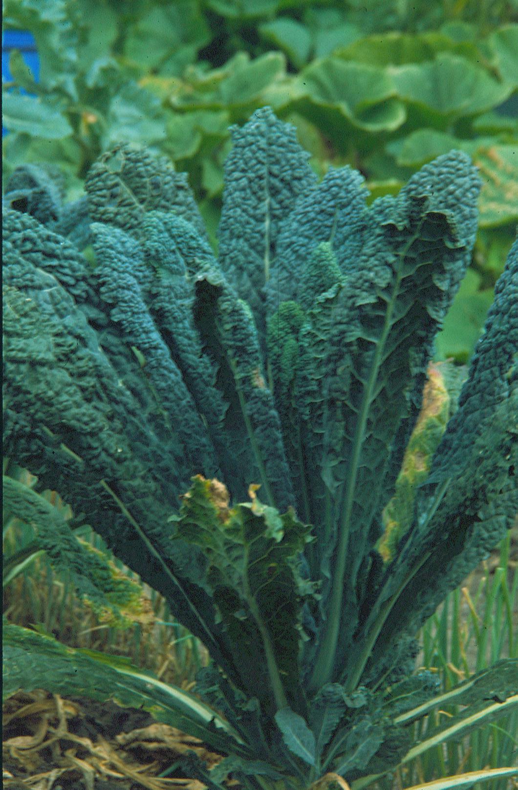 Palmkohl, schmale, blasige dunkelgrüne Blätter, auch für Kübelkultur geeignet