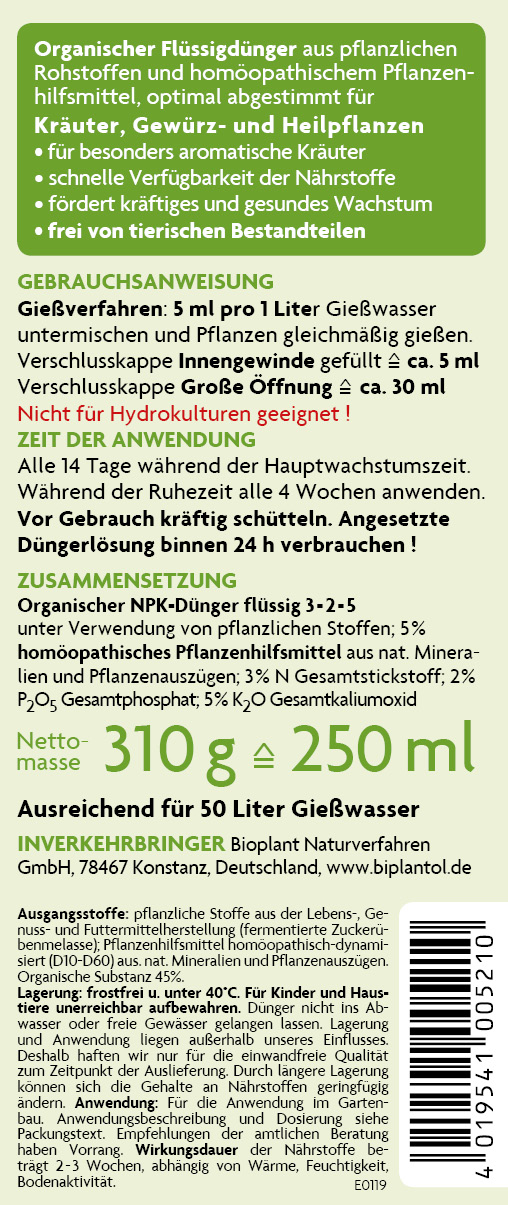 Produktinformationen "Biplantol Dünger Kräuter-Kraft 250 mll"