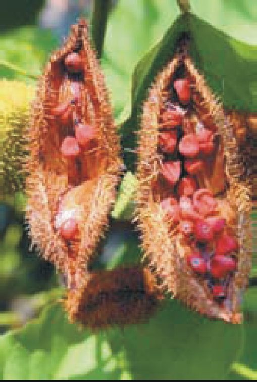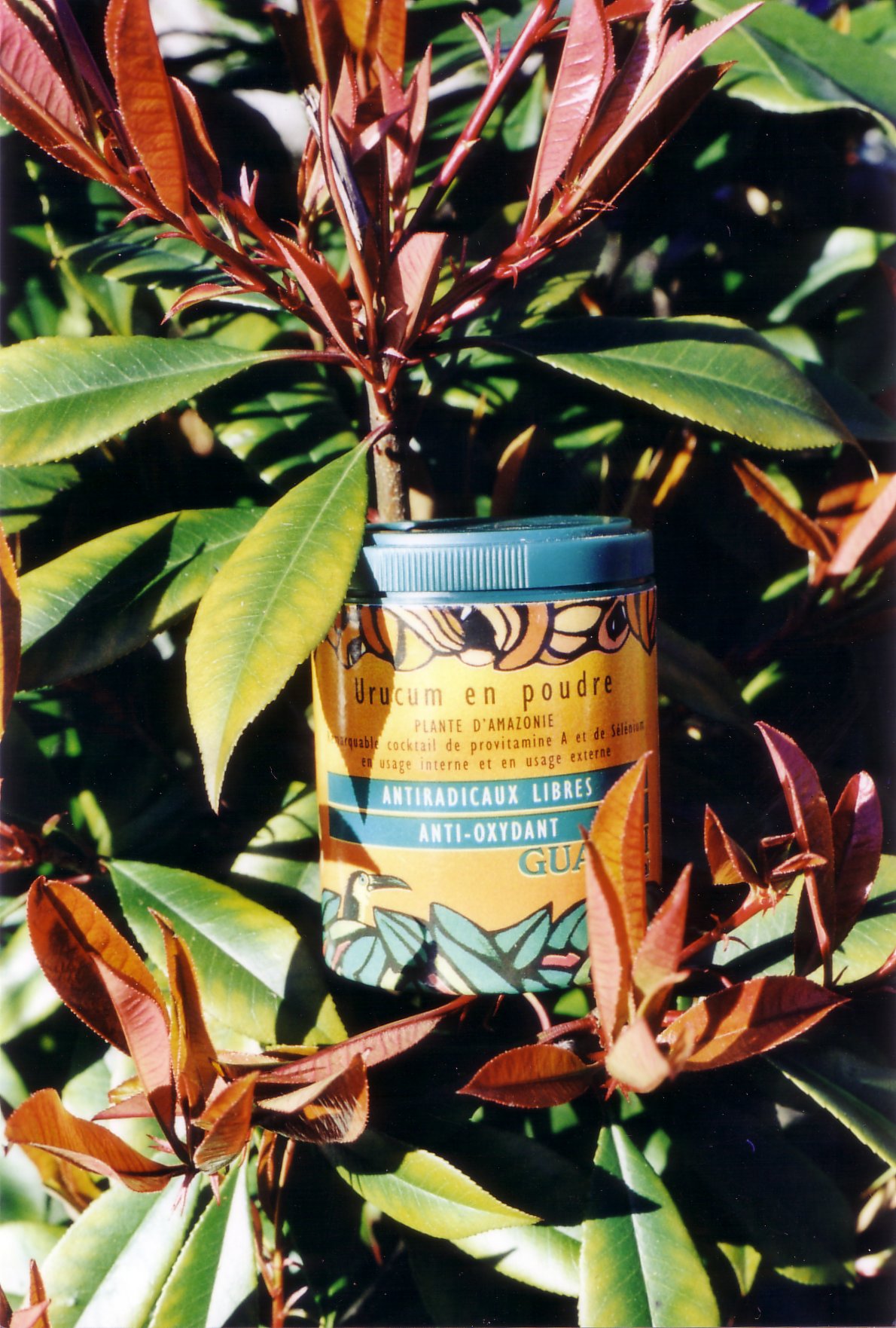 URUCUM (Bixa Orellana) \Für Sonnenanbeter\" ZUR VORBEREITUNG DER HAUT AUF DIE SONNE. REICH AN PROVITAMIN A, SCHUTZ VOR OXYDATION UND FREIEN RADIKALEN Als die Portugiesen vor fast genau 500 Jahren als erste Europäer in den Regenwald des Amazonas vordrangen, entdeckten sie auch seine Ureinwohner, die sich das grellrote URUCUM zum Schutz vor Sonne und Hitze dick auf die Haut auftrugen. So kam es, dass daraufhin alle Ureinwohner des neuen Kontinents Rothäute genannt wurden! • Als Nahrungsbereicherung: URUCUM ist durch seinen außergewöhnlichen Reichtum an Beta-Karotin und Selen sehr reich an natürlichen Antioxydantien (100 x mehr Beta-Karotin als in Karotten!). Dadurch spielt es eine wichtige Rolle als allgemeiner, natürlich bedingter Schutzschild. • Besonders bei exotischen Gerichten eignet sich URUCUM vorzüglich als köstliche und würzende Beigabe: Man kann damit allen Gerichten, wie Reis, Nudeln, Quinoa u.v.a., eine schmackhafte Farbnote verleihen. • Bei äußerer, schützenden Anwendung : URUCUM begünstigt die Pigmentierung und schützt die Haut vor schädlicher Sonneneinstrahlung und hält die Mücken fern. • Als natürliche Kosmetik: Neben der schützenden Wirkung für die Haut betont URUCUM auch die natürliche Schönheit der Haut durch seinen angenehmen, kupferfarbenen Unterton. Herkunft : Vom Amazonas aus Wildlese. Verwendeter Pflanzenteil : Fruchtkerne. Wichtigste Nährstoffe : Provitamin A, Selen (0,41 mg), Kalzium (206 mg), Schwefel (87 mg) und Magnesium (70 mg). Verzehrsempfehlung : Täglich 1 Teelöffel. Entweder als Gewürz über Speisen streuen oder in Gemüse oder Fruchtsaft einrühren. Oder täglich 3 – 6 Tabletten einnehmen oder kauen. Packungsform : Dose mit 80 Tabletten je 600 mg.