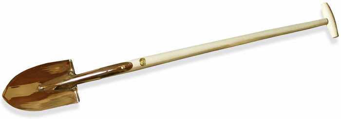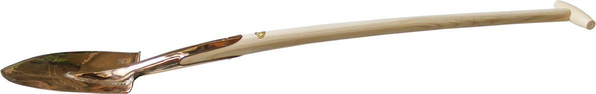Fließender Übergang vom Stechen zum Schaufeln. Massive Kupferlegierung, Eschenholzstiel.