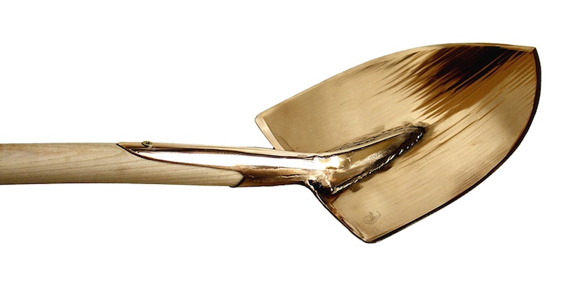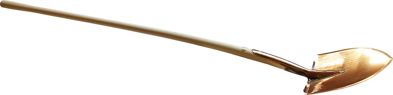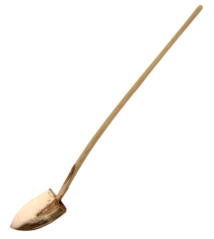 Schaufel "Libra" Wie der Name verheißt "die Leichtgehende". Zur Beförderung der wertvollen Komposterde. Massive Kupferlegierung, Stiel aus Eschenholz