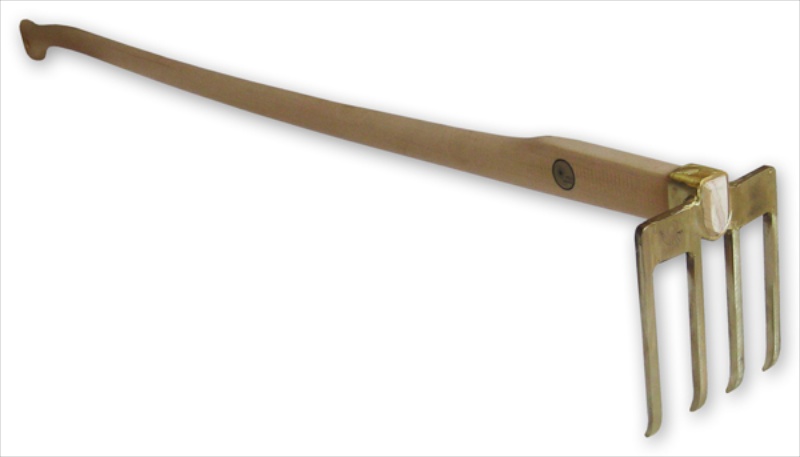Dieser Krail wird wie die Grabgabel aus einer besonders belastbaren und leichten Alu-Bronze hergestellt. Diese Legierung enthält geringste Mengen an Eisen und ist daher minimalst magnetisch.