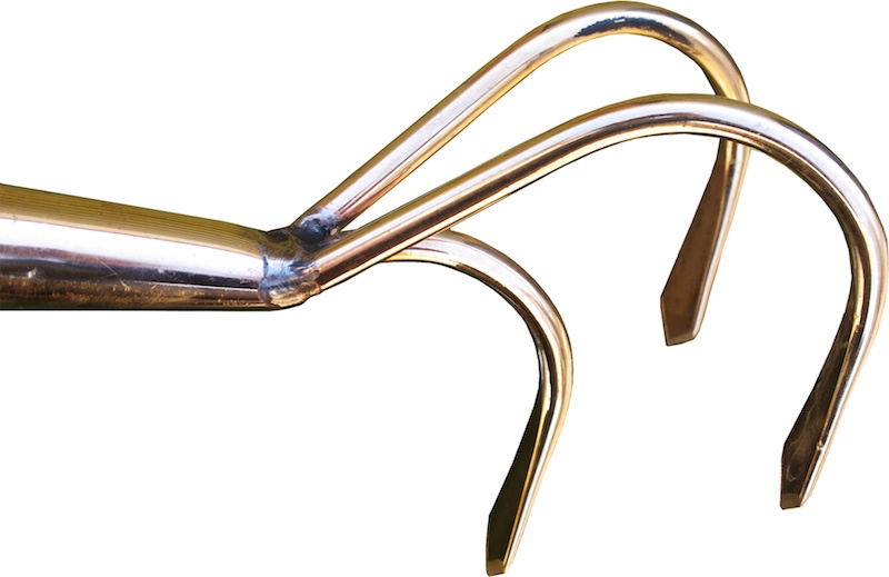 Kultivator mit 3 Zähnen Der Profi beim Jäten Massive Kupferlegierung, Stiel aus Lindenholz.