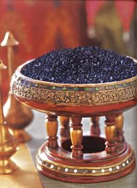 Im Geschmack kräftiger und aromatischer als der helle Sesam. Bereits in der Antike und auch in der ayurvedischen Heilkunde ist schwarzer Sesam als ausgezeichnetes Lebensmittel zur Förderung des Aufbaus von Knochen und Knorpeln bekannt. Durch wissenschaftliche Analysenmethoden wurde dieses alte Wissen nun neu belegt. So wird in der modernen Ernährungslehre schwarzer Sesam nicht nur für die Festigung der Knochen, also zur Vorbeugung bzw. Behandlung der Osteoporose, sondern auch zur Straffung des Gewebes und zur Stärkung der Leber- und Nierenenergie verwendet.