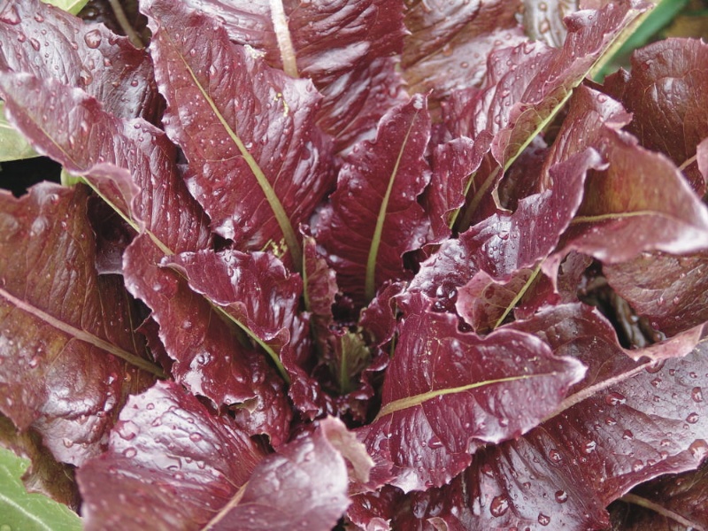 Intensiv rot gefärbte, lockere Köpfe mit sehr langen zungenartigen Blättern. Knackig. Form variiert. kbA, Inhalt: 1 g von Kokopelli