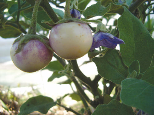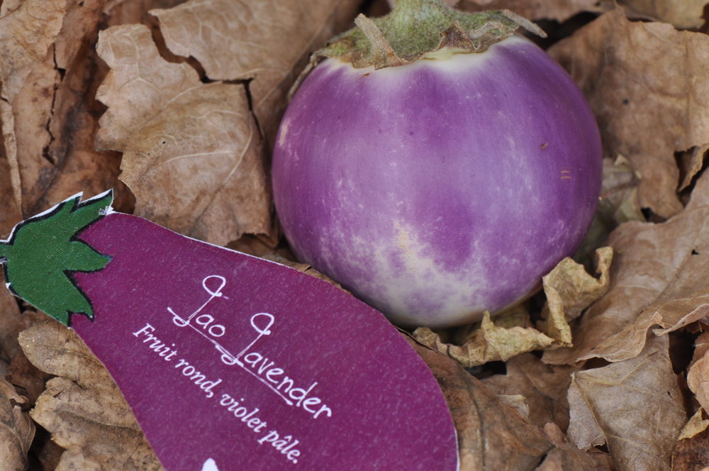 'Lao Lavender' „Außergewöhnlich hübsche und seltene Eierpflanze aus Laos. Rundliche, tennisballgroße, fliederfarbene Früchte, die gelb abreifen, zum Füllen als Vorspeise! Auch für Topfkultur!“ Violette Blüten. Die Pflanzen lassen sich in Eimer kultivieren und blühen noch im Juni. Ungewöhnlich schöne und seltene Fruchtfarbe. Junge Früchte sind hellviolett, werden dann zunehmend weißlich und letzlich gelb. Guter und reicher Ertrag - auch im Freiland. Die lange haltbaren Früchte eignen sich bestens zur Dekoration. Interessant ist der intensive Duft des Fruchtfleisches: Wenn man die Früchte aufschneidet, duftet es zitronenartig.