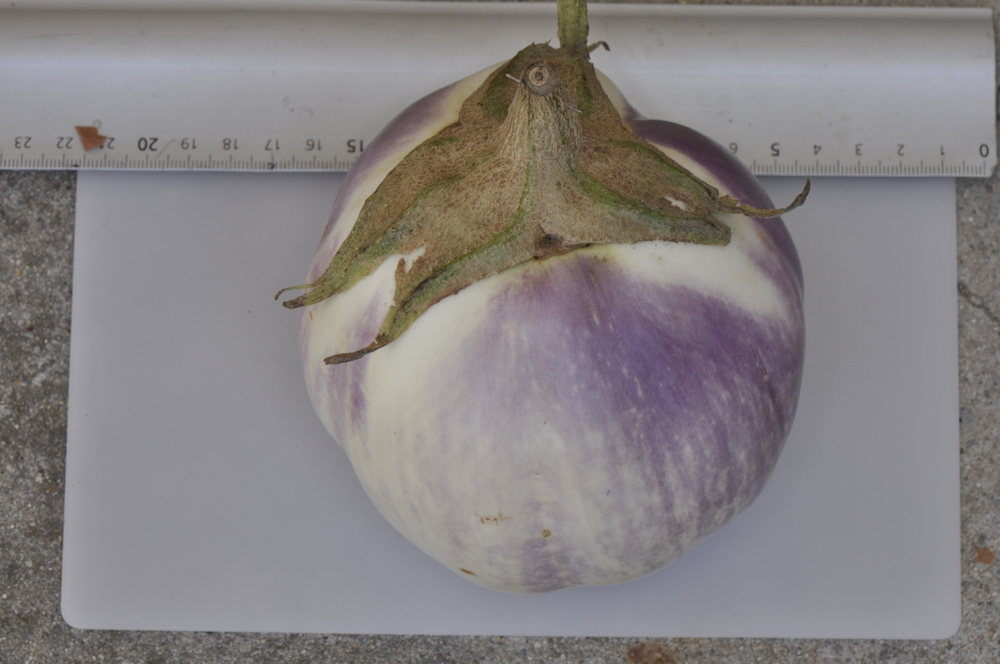 Traditionelle Sorte, ertragreich 8-10 Früchte, oval. Violett mit weißem Schimmer, mild. Wüchsig. 100 Tage.