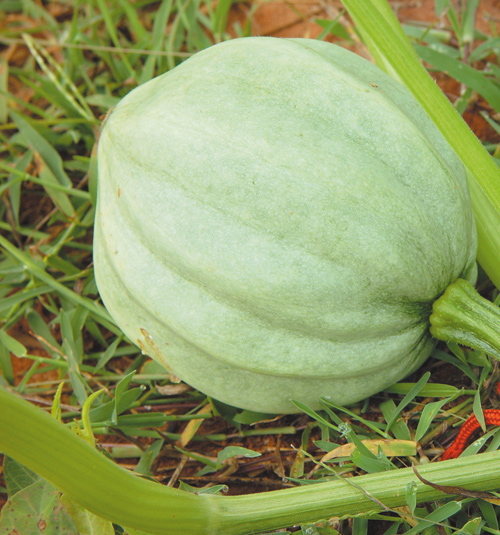 Sorte aus den USA. Schwarz-grüne Früchte in Form einer Eichel. Bis 2 kg. Nussaroma. Sehr ertragreich und wüchsig. Halbrankend. Bis acht Monate lagerbar. 80 bis 90 Tage.