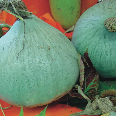 Diese Sorte aus den USA bringt blaugraue Früchte vom Typ „Hubbard-Blau“ hervor mit einem Durchmesser von bis zu 20 cm und einem Gewicht von bis zu 2 kg. Die glatte Epidermis enthält ein helles, süßes Orangenfleisch.Mini-Hubbard. 2-3 Früchte. Sehr süß. Lange lagerbar.