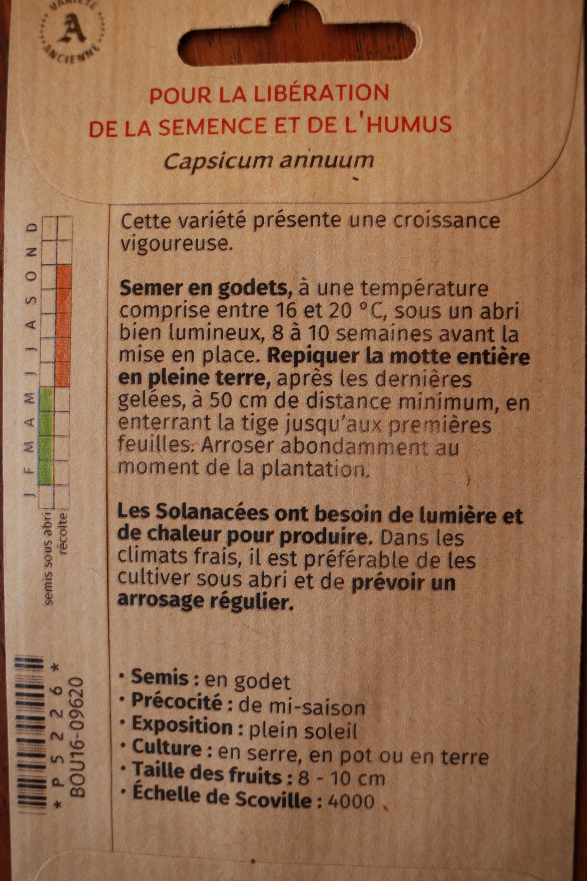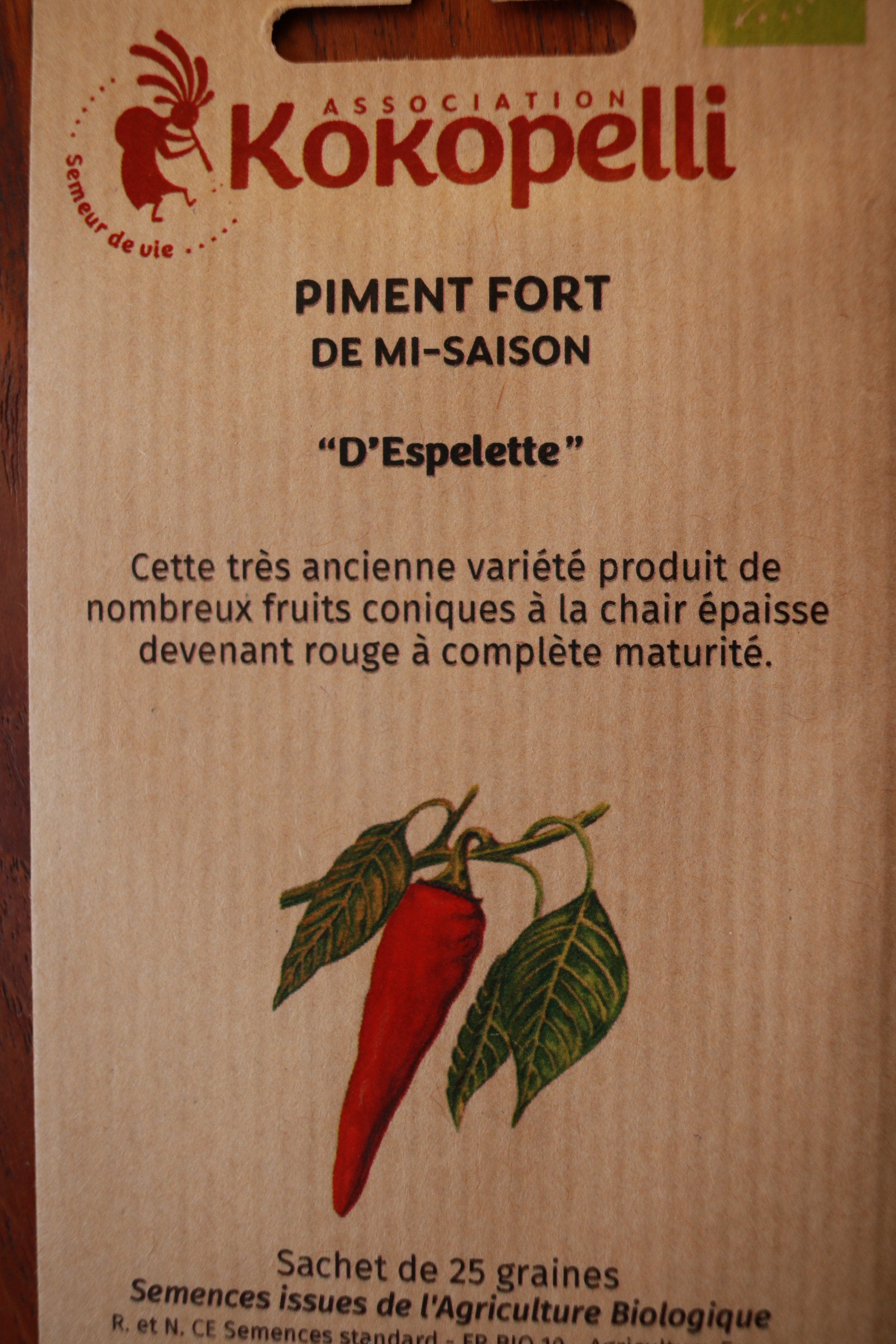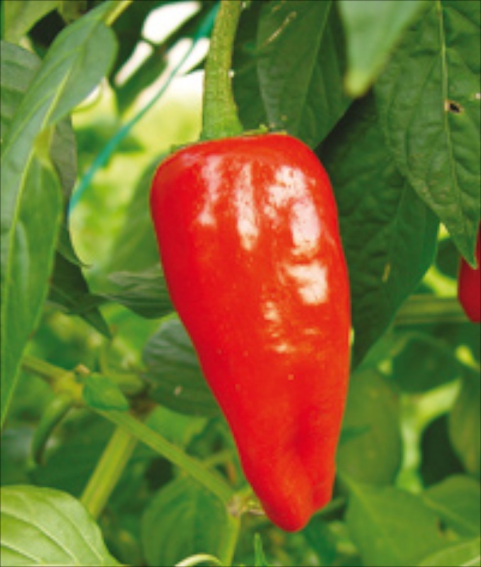 Traditionelle Sorte, Baskenland. Fülle kegelförmiger Früchte, 7-9cm, rot, 60 cm hoch. Diese ursprünglich aus Südamerika stammende Sorte scheint 1523 von Gonzalo Percaztegi, einem baskischen Seefahrer, der ursprünglich aus dem Dorf Espelette stammte und Christoph Kolumbus begleitete, importiert worden zu sein. Sehr scharf. Inhalt 25 Korn kbA.
