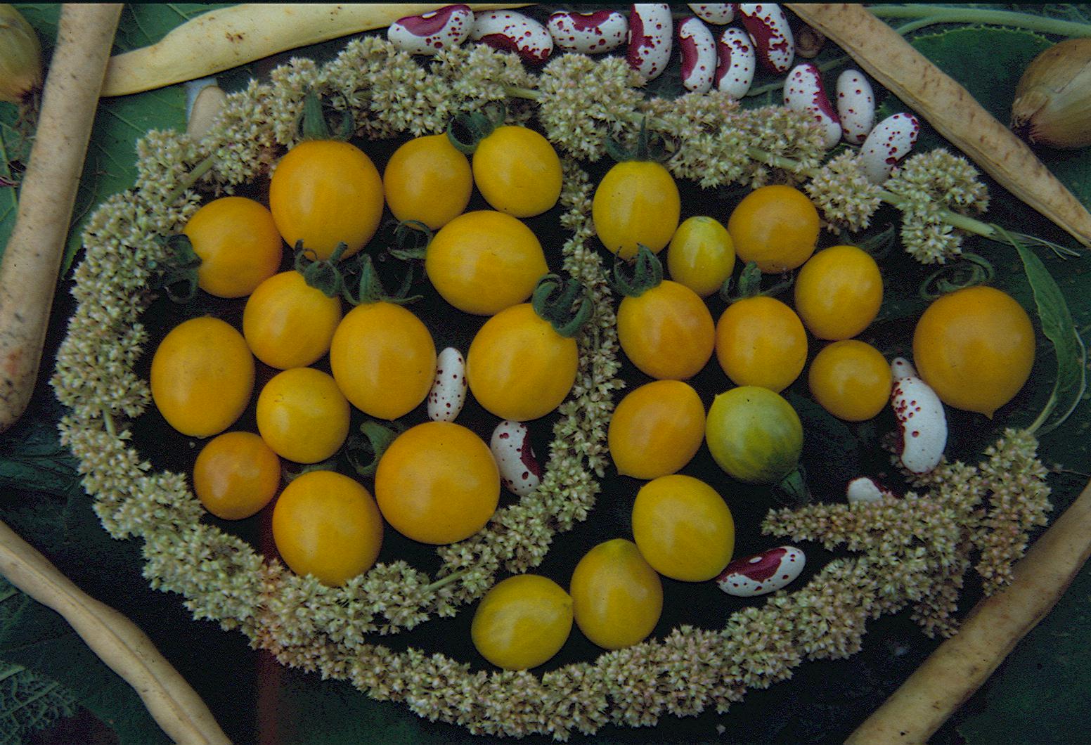 ‚Bolivianische Wildtomate‘ (mit orangen, gelben und roten Früchten)