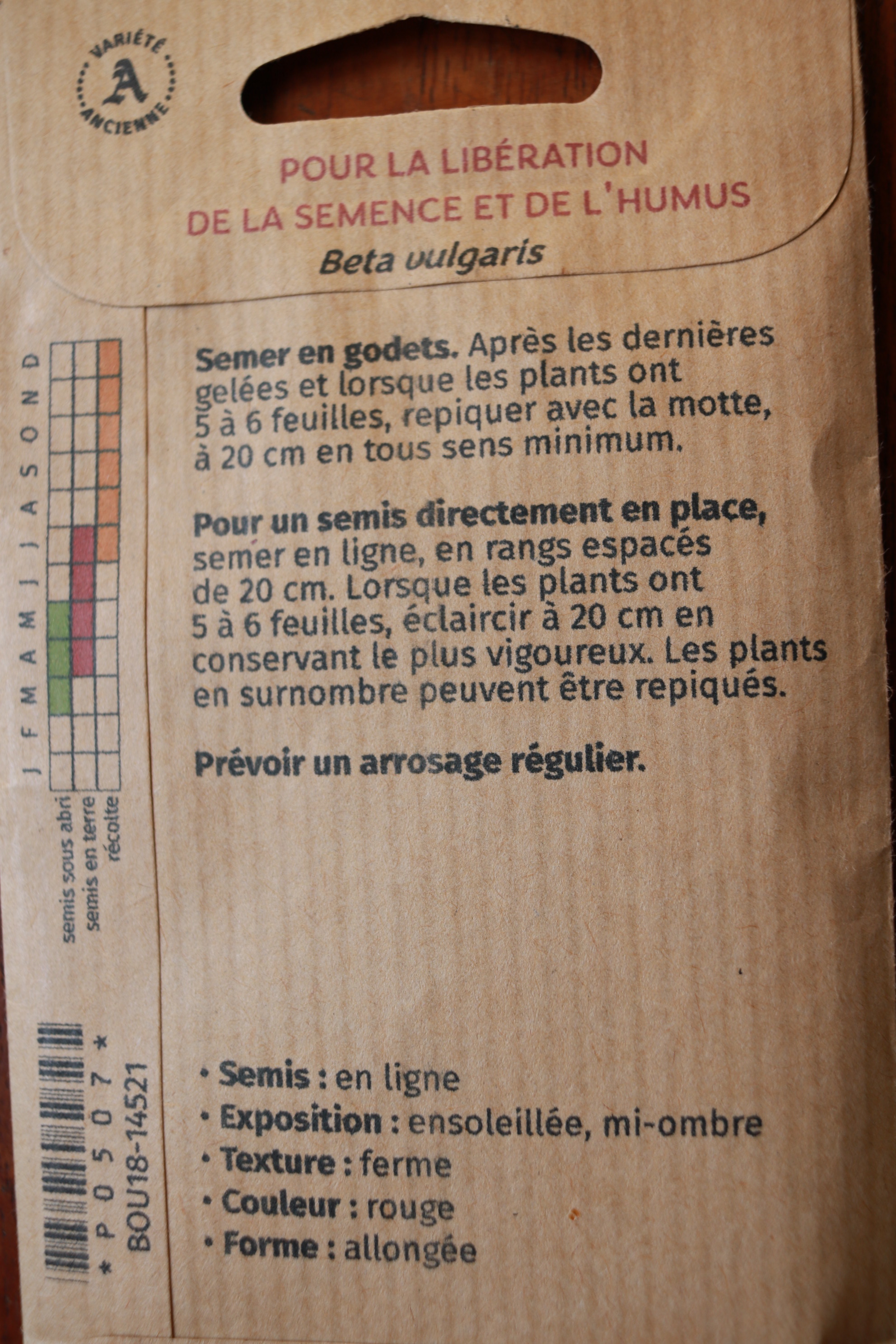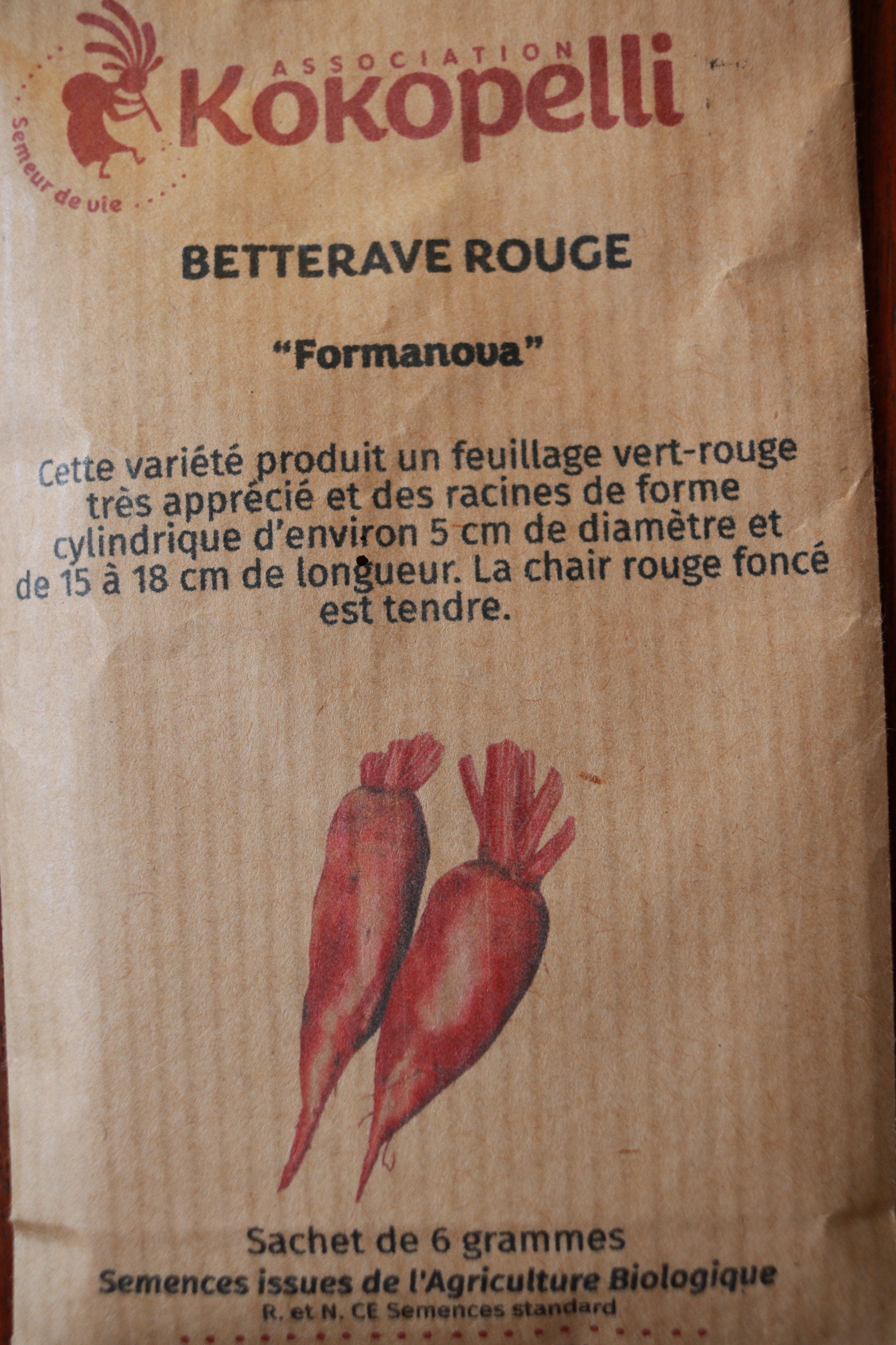 Zylindrische Wurzeln. 5 cm Ø 15-18 cm lang. Fleisch dunkelrot, zart und sehr schmackhaft. Grün-rotes Laub mit exzellentem Geschmack.