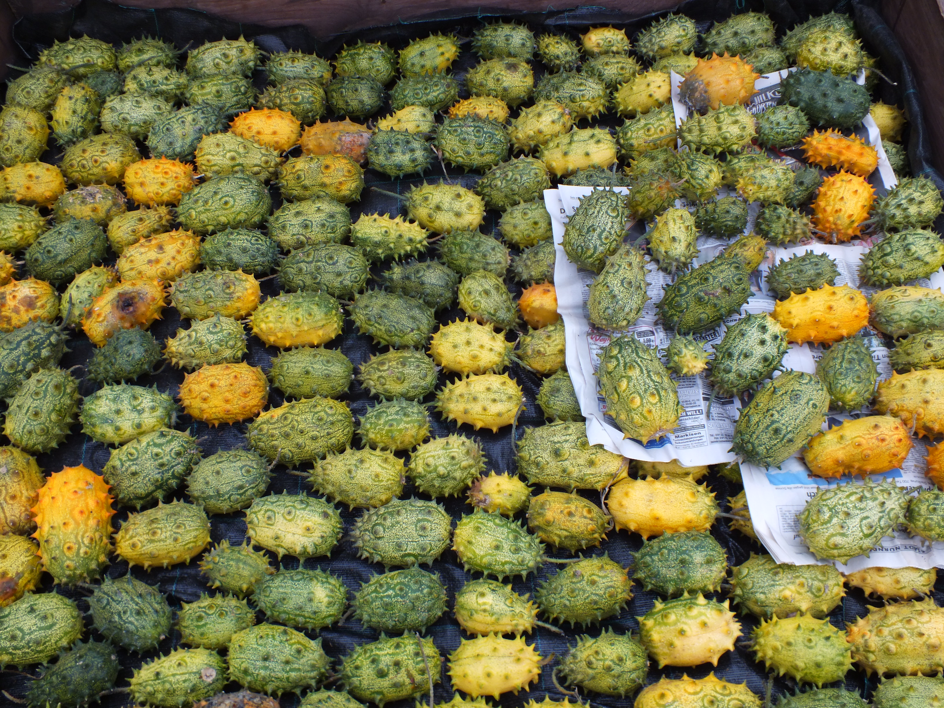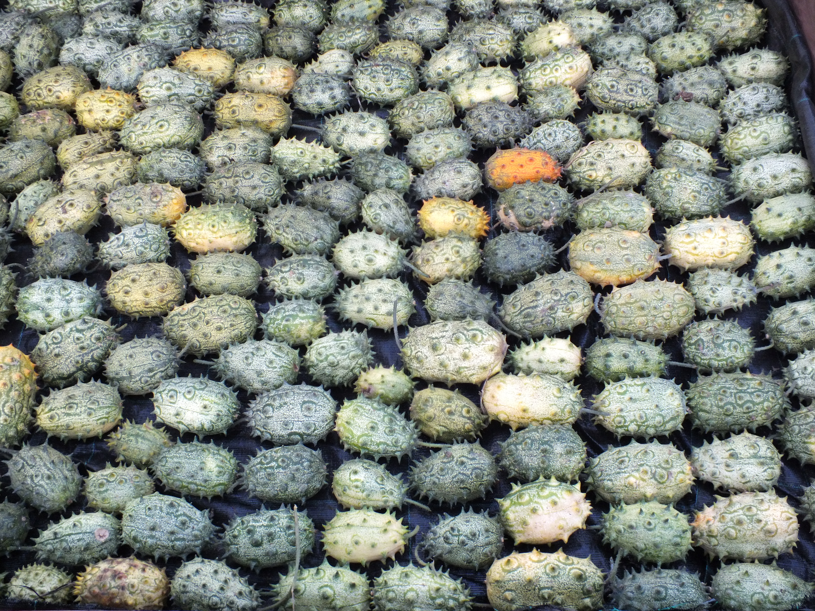 Der in Afrika südlich der Sahara beheimatete Kiwano (Cucumis metuliferus) produziert ovale Früchte mit sehr scharfen Spitzen. Die Haut wird im reifen Zustand bronze-rot und das grüne Fruchtfleisch bietet eine saftige Textur mit einem ähnlichen Geschmack wie Kiwi und Banane. Kiwano wird roh oder gegrillt gegessen. Es bietet einen sehr hohen Vitamin C-Gehalt. Neuere medizinische Untersuchungen haben gezeigt, dass es Cucurbitacin B enthält, ein Triterpen, das für seine zytologischen, entzündungshemmenden und krebsbekämpfenden Eigenschaften bekannt ist.