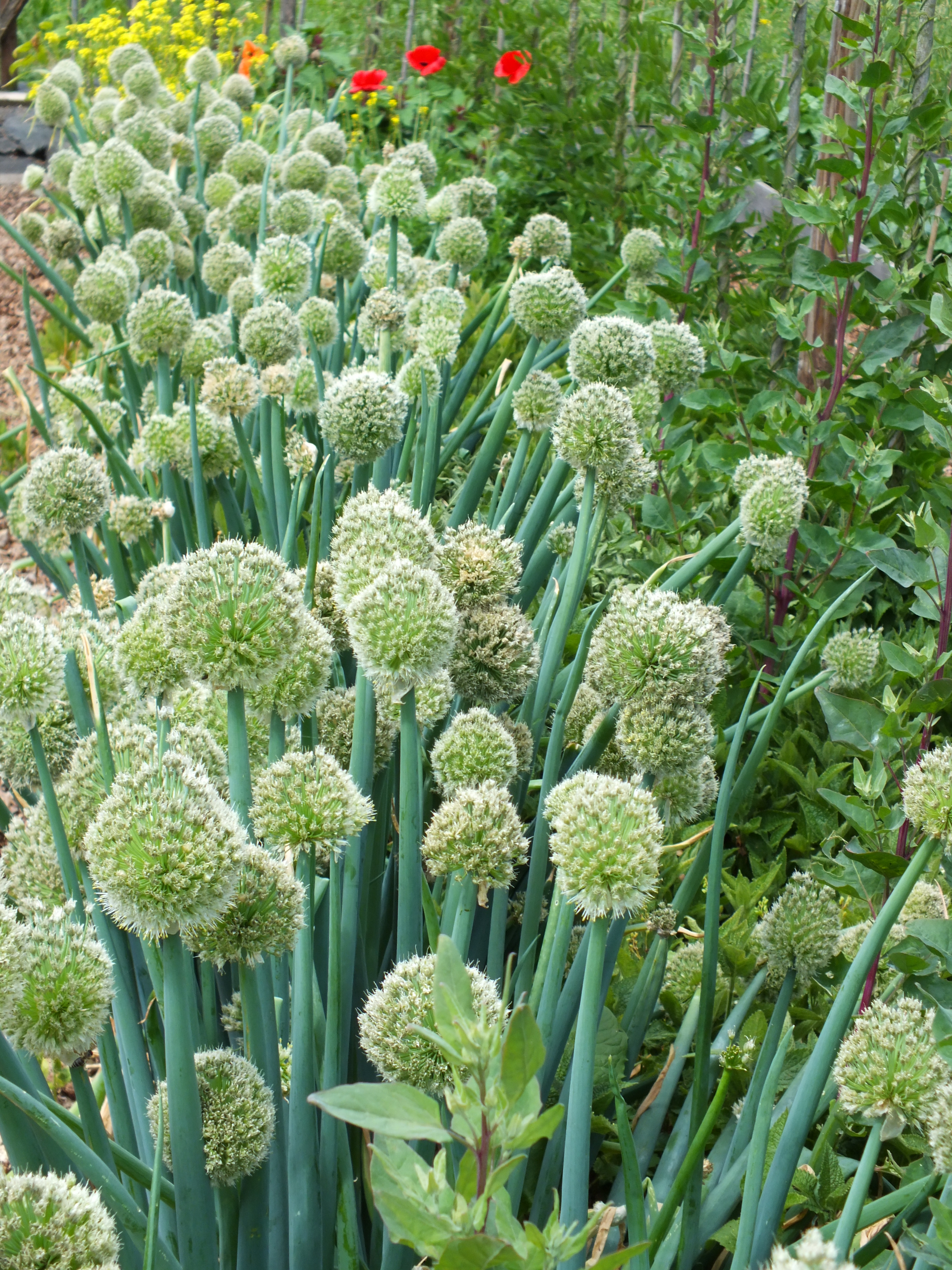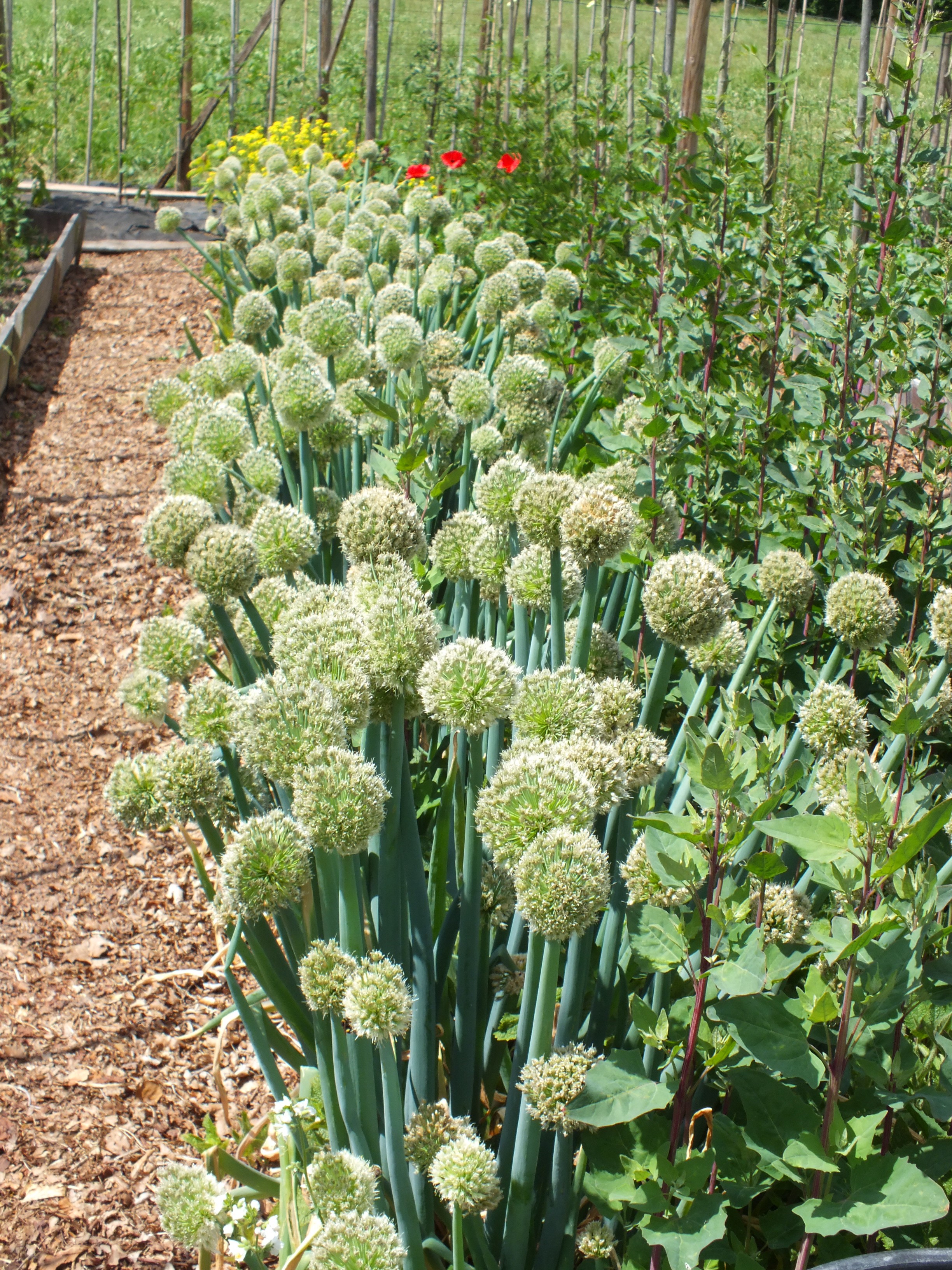 Ausdauernde Gemüse- und Würzpflanze für den Küchengarten. Bei dieser Zwiebelart werden vor allem die aromatischen Schlotten als vitaminreiche Kost im zeitigen Frühjahr und über den Sommer genommen. Auch die grünweißlichen Blütenbälle sind essbar. Pflanze bildet regelrechte Stöcke, die alle 2 - 3 Jahre geteilt werden können oder Neuanzucht. Winterheckenzwiebeln können auch einjährig als Bundzwiebel angebaut werden. Keine Zwiebelbildung, nur schwache Verdickung.Höhe ca. 50 cm. Rasch nachwachsend, Winterhart. Aussaat im Frühjahr oder Sommer- und Herbstaussaat