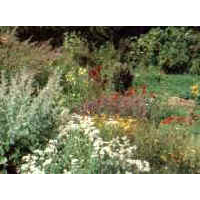 Enthaltene Arten: Stockmalve, Jupiternelke, Röm. Kamille, Echter Alant, Türkenmohn, Purpursonnenhut, Brennende Liebe, Mutterkraut, Muskatellersalbei, Telekie, Lobelie, Hohes Helmkraut.
